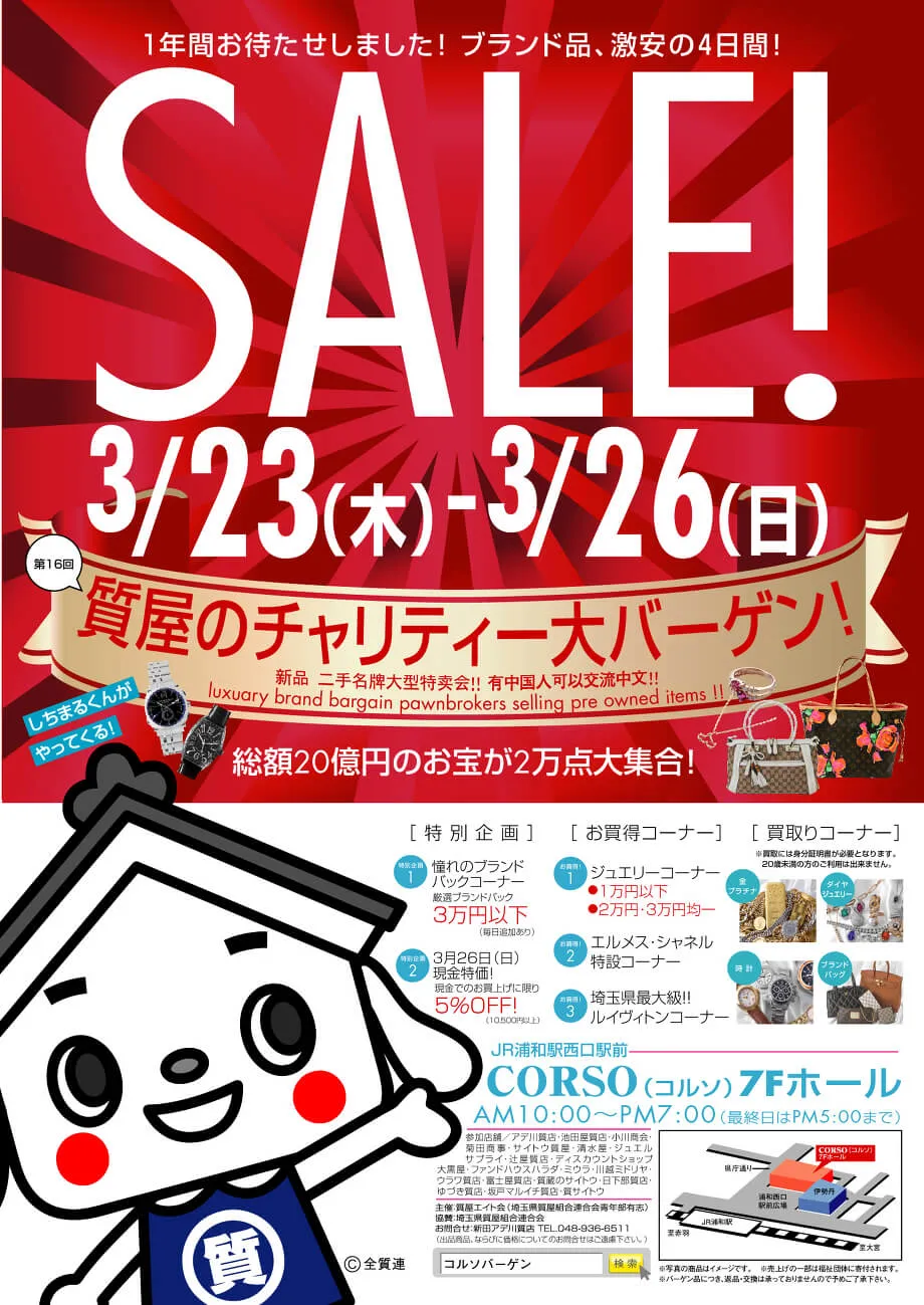 質屋のチャリティ大バーゲン特別価格
